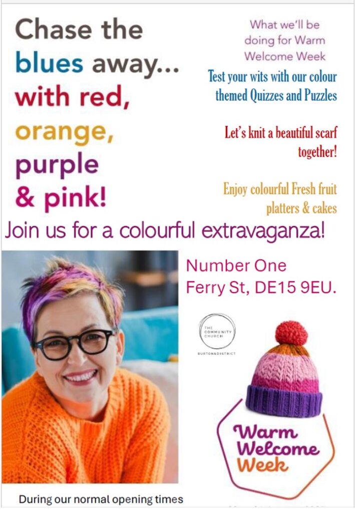 As a registered Warm Welcome Space, The Community Church will be embracing taking so-called ‘Blue Monday’ back on 20 January 2025 by giving it a colourful makeover and making it the start of our Warm Welcome Week.