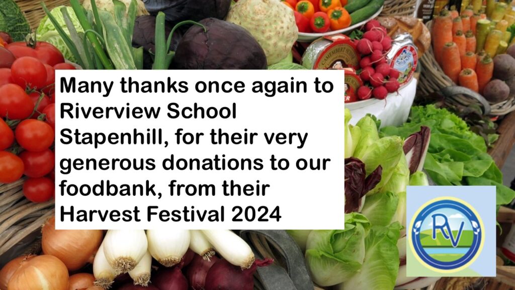 Foodbank co-ordinator Carole Shorthouse visited Riverview Primary on Thursday 17th October, to collect generous donations from the schools Harvest festival 2024.