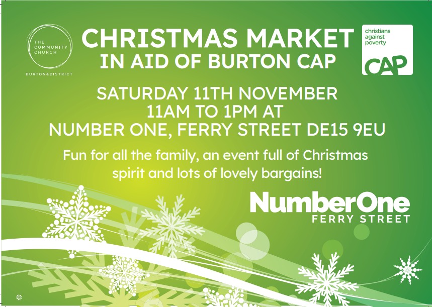 Our Fundraising Christmas Market in aid of Burton CAP centre at The Community Church, proved to be a big success with local residents coming along to support the event. Queues built up outside an hour before the doors opened to welcome people into what we hope will become an annual event. Many local residents were keen to donate beautiful items in new condition to raise funds for those who are struggling to cope in the current financial crisis. A staggering £1,500 was raised in just two hours, and we would like to take this opportunity to say a massive thank you to everyone who made that possible.